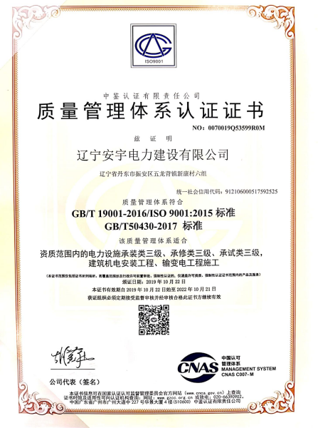 安宇電建獲得地基基礎工程叁級資質,建筑機電安裝工程承包叁級資質,輸變電工程承包叁級資質及東北能源局叁級承裝,叁級承修,叁級承試資質